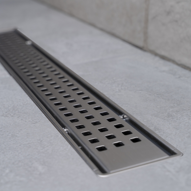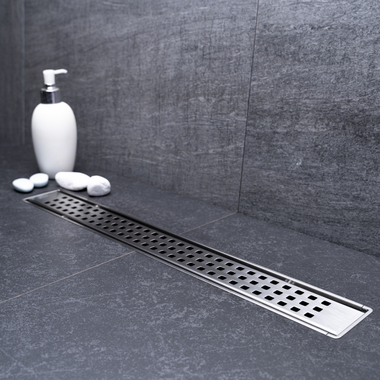 Canal de duche em ABS e redutor em Polipropileno, sem entradas laterais e com uma saída horizontal DN 50mm.