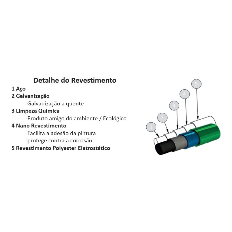 Disponível nas cores RAL 6005 - Verde | RAL 7016 Cinza