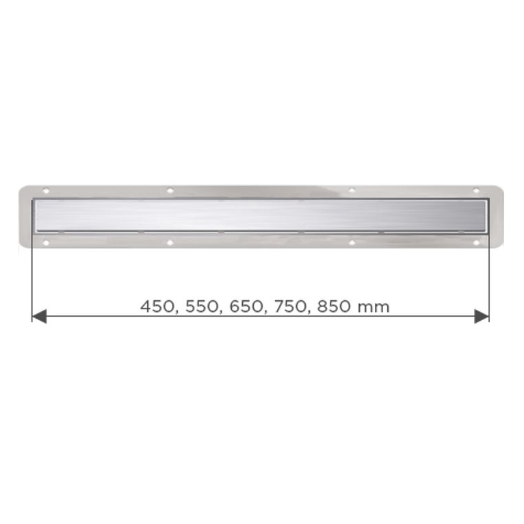 Canal de duche em ABS e redutor em Polipropileno, sem entradas laterais e com uma saída horizontal DN 50mm.